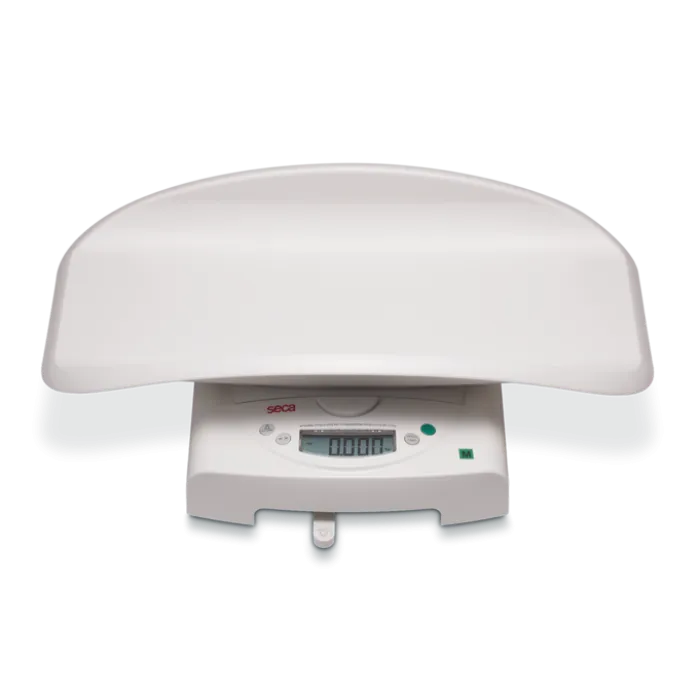 The genius of the Seca 384 lies in its detachable tray. By simply pressing a button, the tray releases, revealing a stable floor scale suitable for children weighing up to 20kg. This dual functionality saves space and equipment costs. Additionally, the scale includes a Breast-Milk-Intake-Function (BMIF) that allows clinicians to determine the exact amount of milk a baby consumes during breastfeeding.